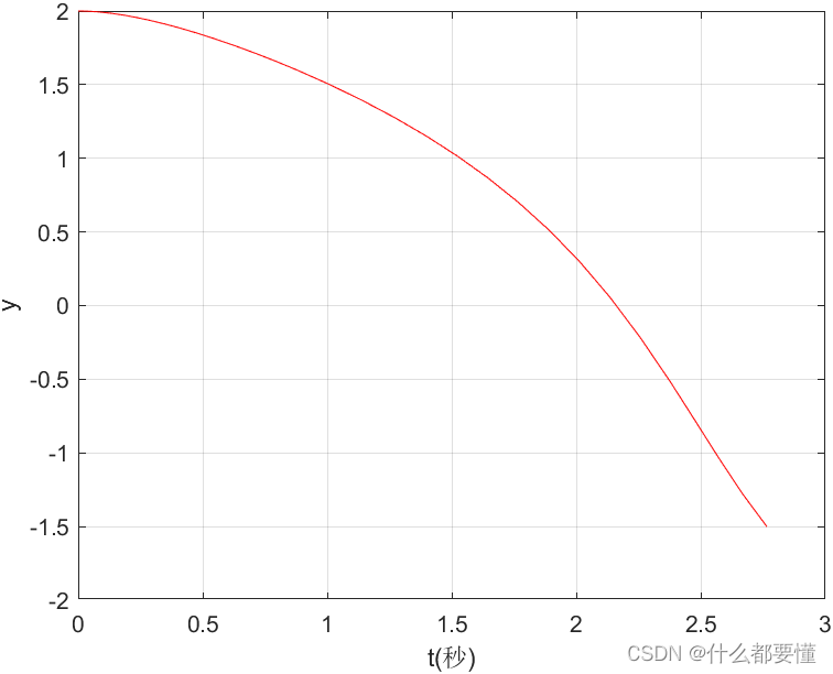 此外,如果积分区间不定,但知道需要在y减小到-1.5时停止积分,就需要使用ode45的事件描述: