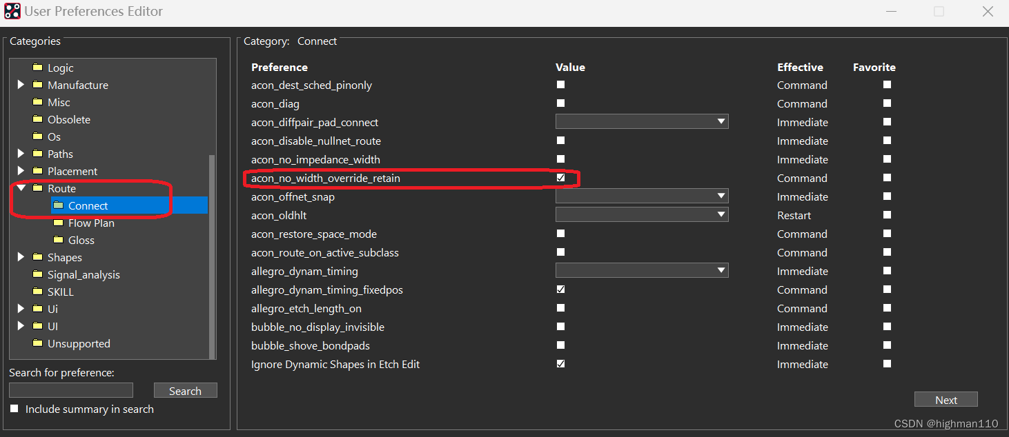 这个线宽如果手动修改一次后,软件默认下次走线还是这个宽度,这个在user preference里可以进行设置为不记忆,如下图勾选即可:
