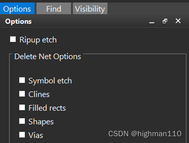 Nets:删除网络的所有走线、过孔,需与options面板参数配合使用,建议谨慎使用。