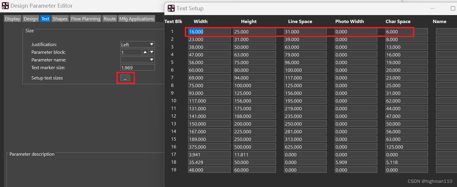这里每种字号的属性可在design parameter中修改,如下图所示: