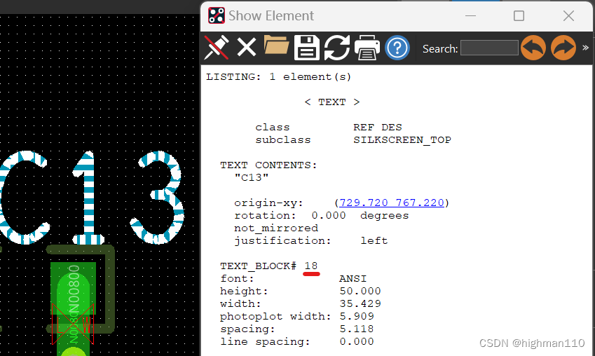 2、改变text大小:先用 show element命令查看当前文字是什么字号,如下图所示为18号;
