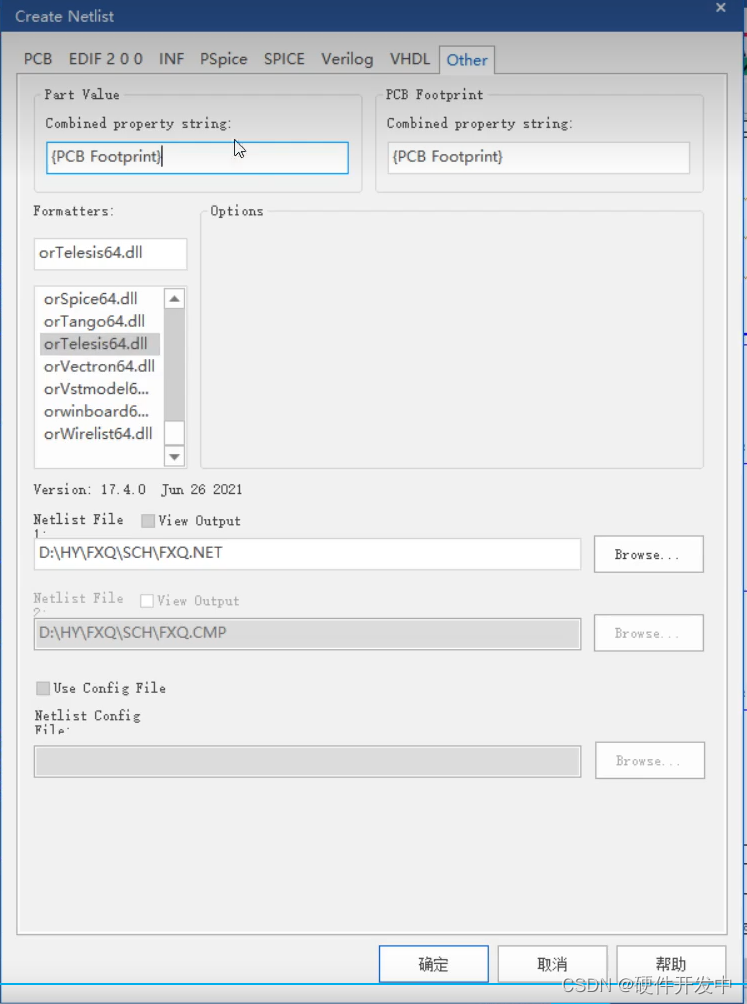 第3方网表,需要将value值改为 pcb footprint(value里面有小数点,括号等,第3方软件不识别)