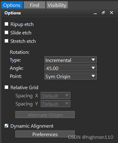 动态对齐在器件移动时进行设置。在move的option面板勾选dynamic alignment,点击preference可进行动态对齐设置,一般勾选component origin,表示以器件原点做对齐。