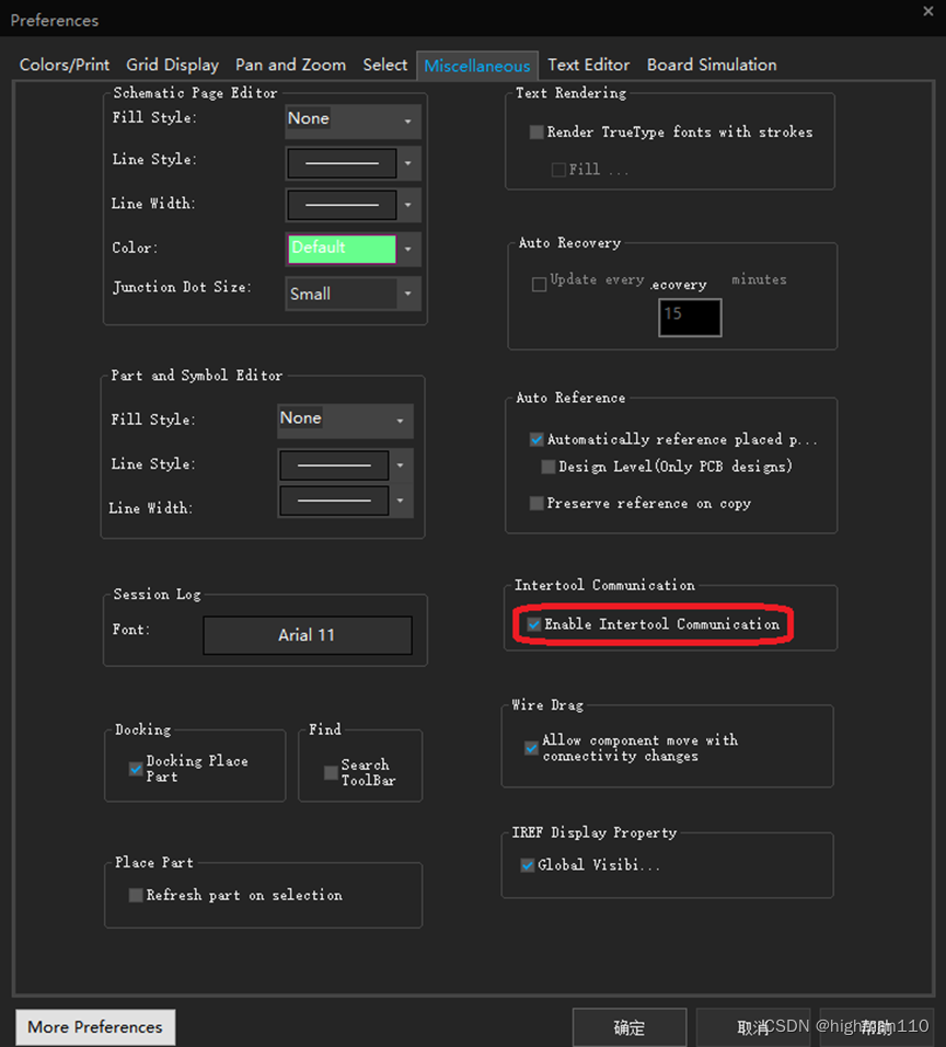 1、首先在原理图工具capture里使能交互操作,option-preference-miscellaneous,勾选enable intertool communication。