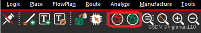 菜单栏中的如下两个图标,左边红色为关闭所有飞线,右边绿色为打开所有飞线。