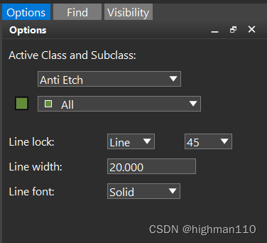 先绘制分割线, add -line,在option面板选择画线层为anti etch的所有层,线宽根据实际要求分割宽度设置。