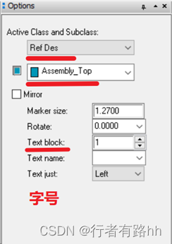 在Options选项卡选择Class→Ref Des,Sub Class选择→Assembly_TOP。