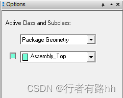 在Options选项卡Class选择→Package Geometry,Subclass选择→Assembly_Top,