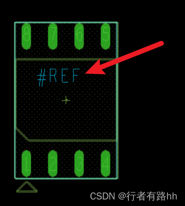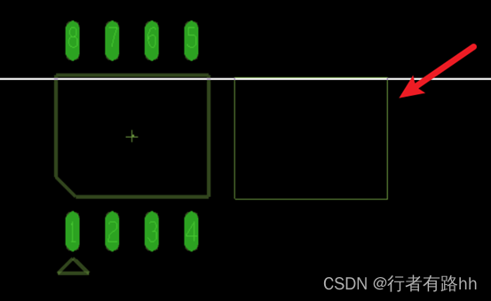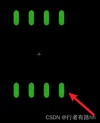 然后在PCB编辑区域放置好封装的8个焊盘管脚,如下图所示