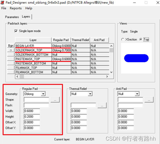 在Layers选项卡输入所要建立焊盘的参数。完成后点击保存。如下图所示