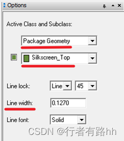 同样在Options选项卡Class选择→Package Geometry,Sub Class选择→Silkscreen_TOP,