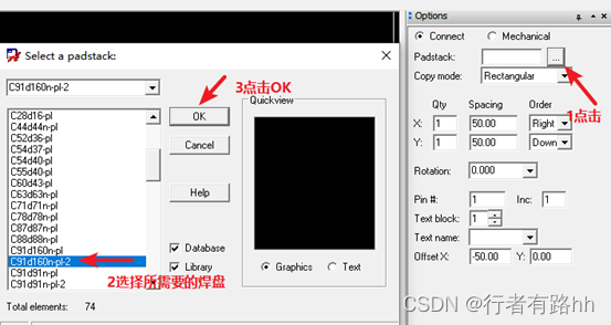 然后在Options选项卡点击Padstack后的...。跳出左侧的对话框。选择所要制作封装的焊盘,就是在第一步制作的焊盘,点击OK