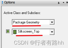 在Options选项卡Class选择→Package Geometry,Subclass选择→Silkscreen_TOP,