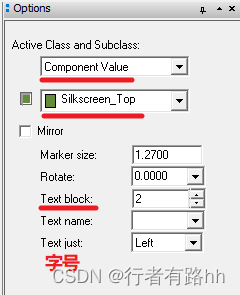在Options选项卡选择值所在的Class→Component Value,Sub Class选择→Silkscreen_TOP。
