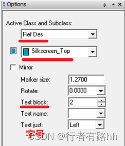 在Options选项卡选择Class→Ref Des,Sub Class选择→Silkscreen_TOP。
