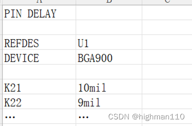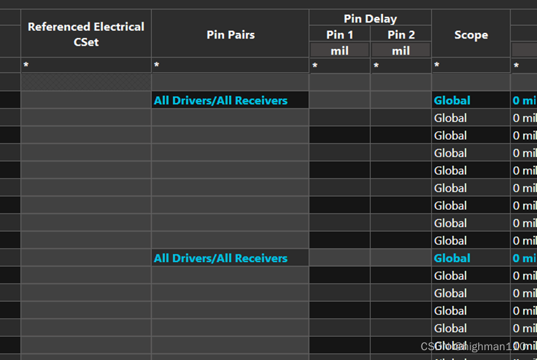 然后进入约束管理器的electrical-relative propagation delay,可以手动填入厂家给的数据,也可以导入,导入格式为csv表格。