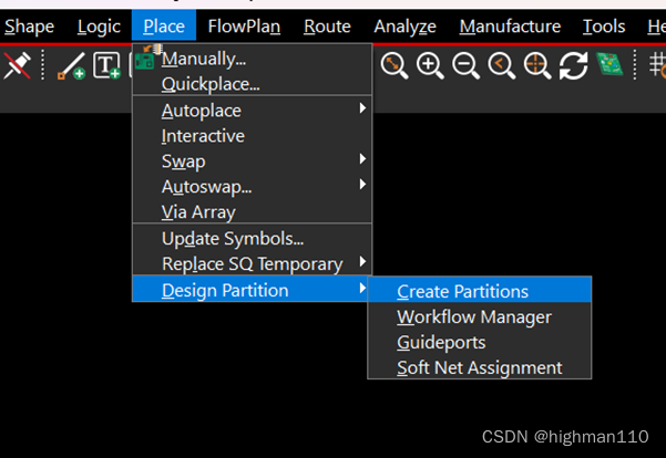进入软件后点击place-design partition-create partition,然后在PCB中右键- add shape,在option面板设置画线转角为45度,圈出想要分出来的PCB部分,然后右键-done即可。