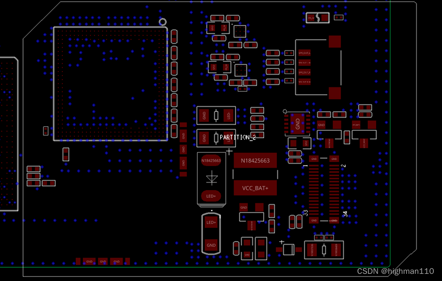3、IC扇出优先选择外侧,有多排尽量调整地与电源的信号过孔扇出到管脚附近。 左右2边过孔应保持在同一水平线上,以方便内层布线。