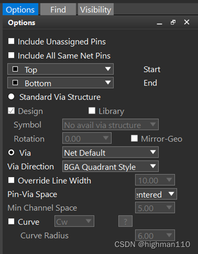 Via:选择扇出所需要用到的过孔,过孔首先需要在物理规则里面添加好,不然这里没有可以选择的过孔;