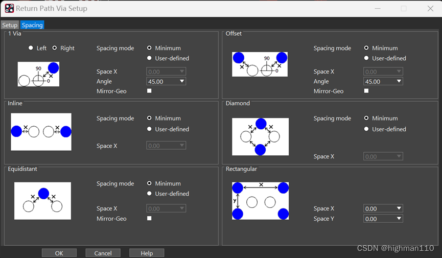 Pin-Via Space:过孔到焊盘的间距,一般选择中心间距,将过孔扇出在周围四个焊盘的中心处。