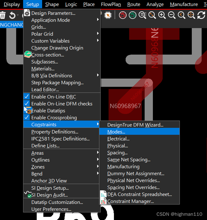 在setting-setup中设置过孔网络和选择过孔: