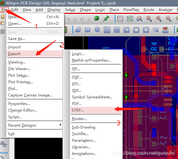 在allegro中查看板子的各个模型,确认没有出现问题后将3D模型以setp的格式导出,如下图所示:
