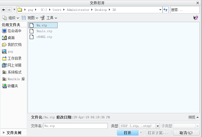 生成stp文件之后将文件导入proe or Creo 软件 。