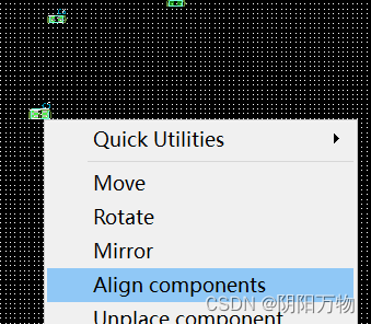 3.在画图区域直接选择需要对齐的器件,右键选择“Align components”,这时软件会自动弹出“Options”,可以在工具栏中选择相应的对齐效果,居中、上对齐、下对齐;