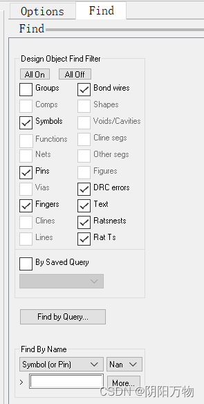 2.在“Find”工具栏中,勾选需要对齐的器件、文本等