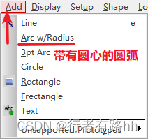 选择菜单栏Add→Arc w/Radius