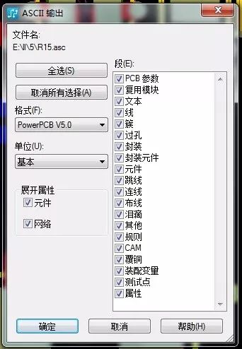 ASCII选项如上图,格式可选Power PCBV3.0 到V5.0,以及PADS Layout9.3以下版本都可以。