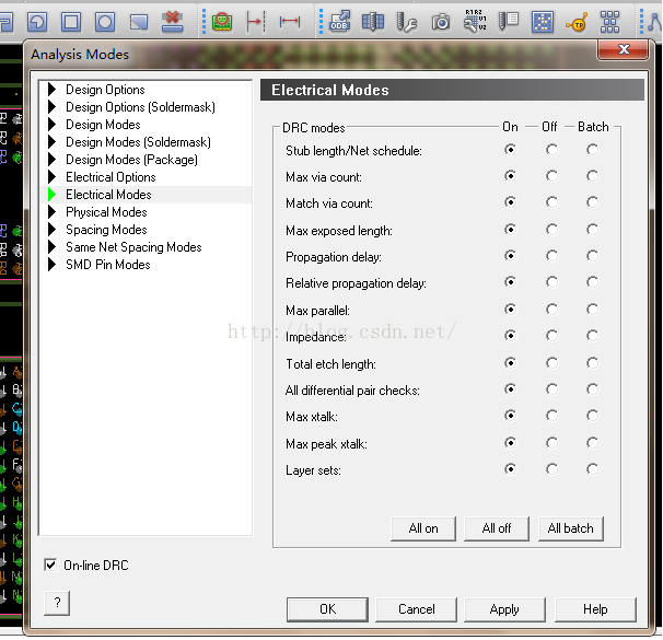 选择setup- >constraints->mode,进入analysis modes菜单,如下图所示: