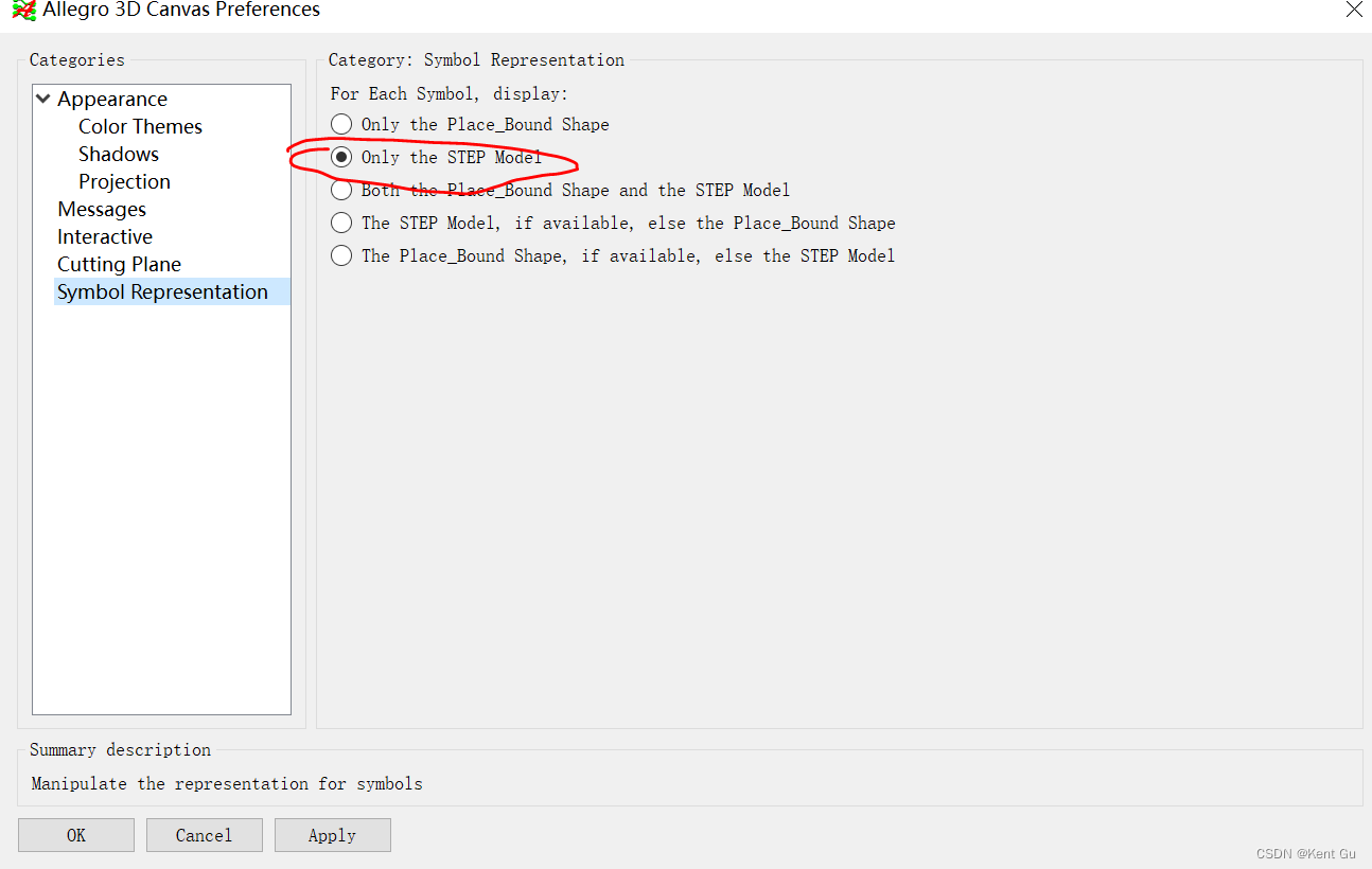 1.5 3D view setting, Allegro 3D Canvas \Prefrerence to select step or plance bound