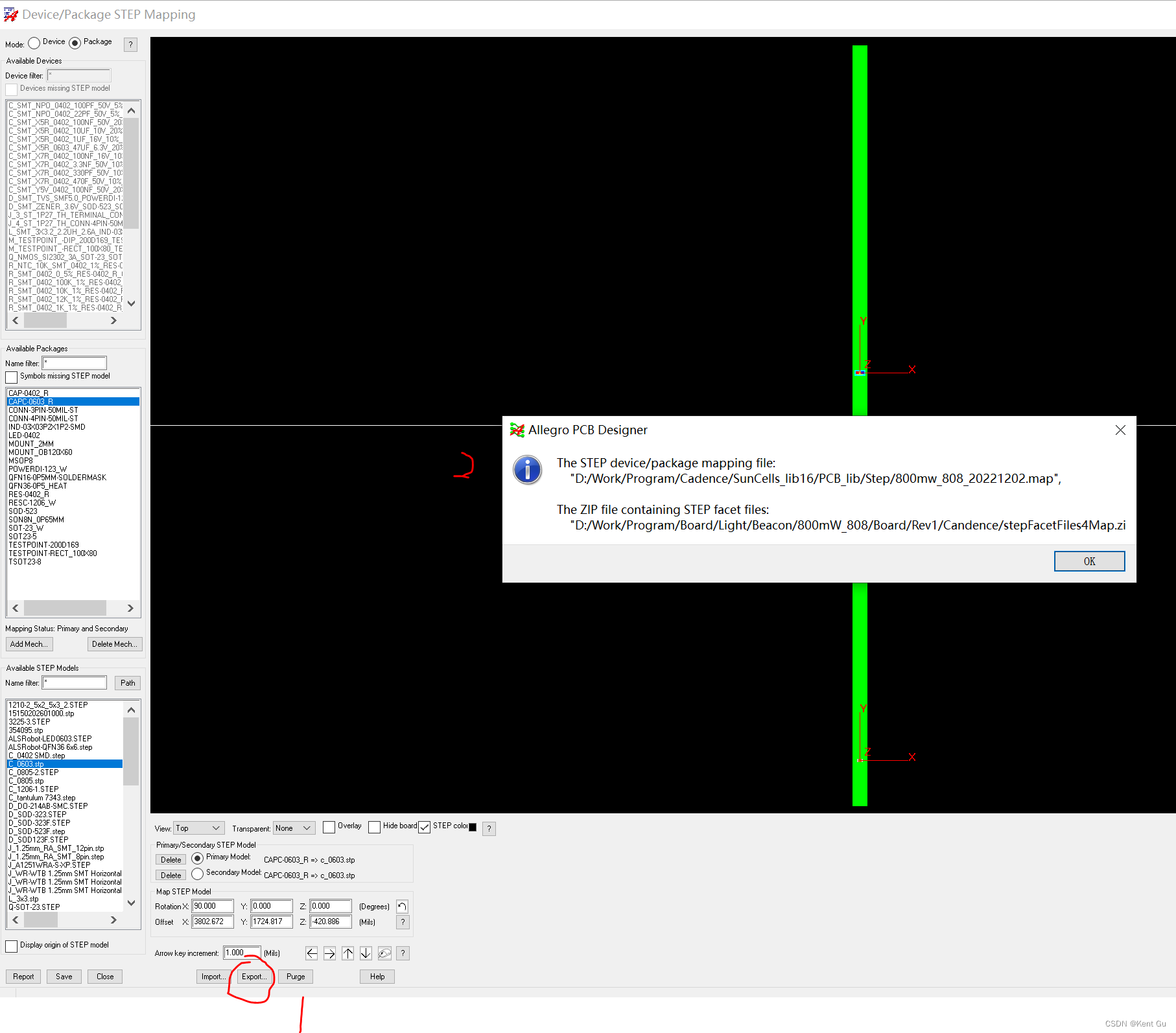 1.2 Setup/Step Package Mapping , connect pcb package and step files, to creat *.xml file such as 800mw_808_20221202.map file(关联文件,文件夹放在第一个位置)