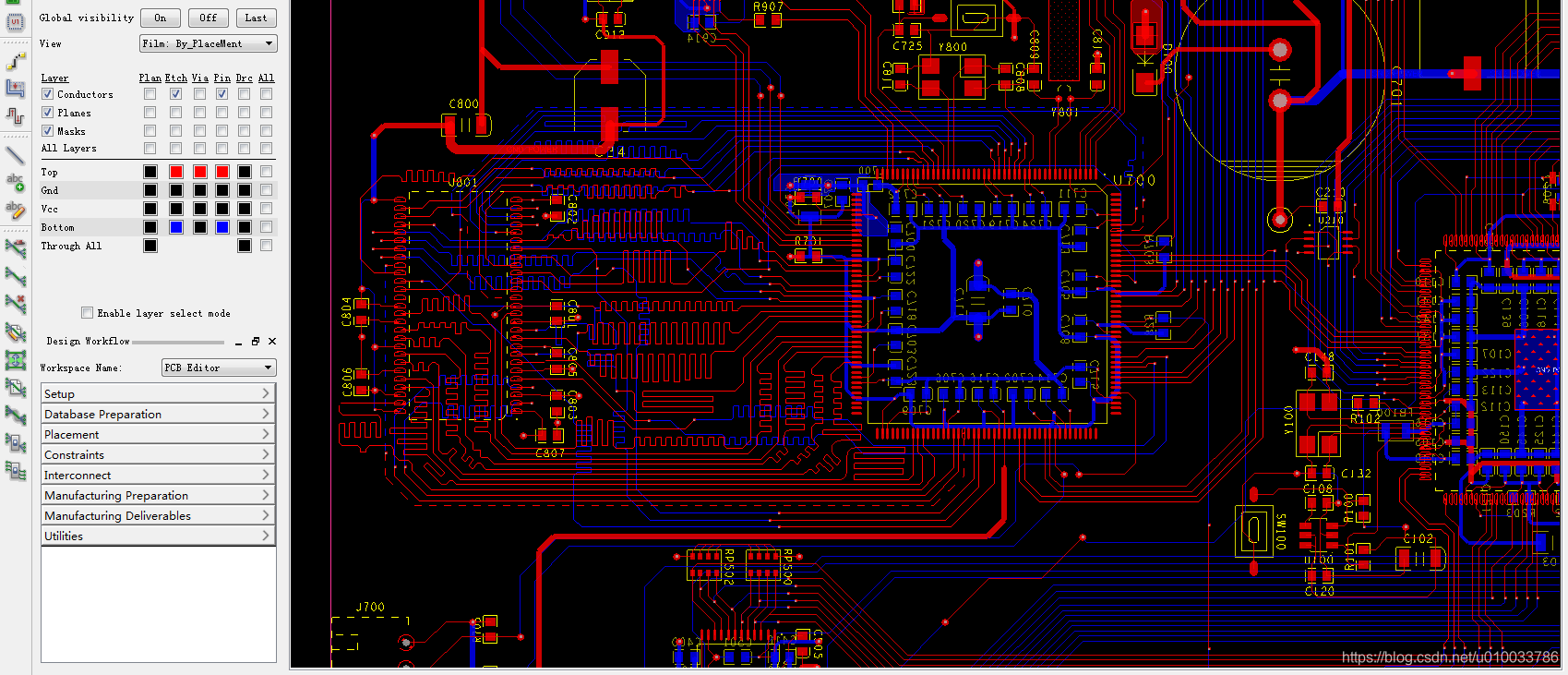 (1)选取一个4层电路板的实例文件,如下图所示,选取的这个文件,截图的部分是MCU与SDRAM存储器的部分,假设需要分析SDRAM走线的阻抗。