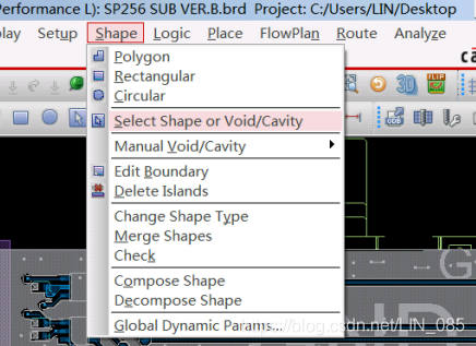 Shape-> Select Shape or Void/Cavity,选择铺铜的shape