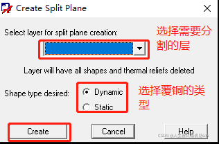 edit→spit plane→create 创建覆铜平面