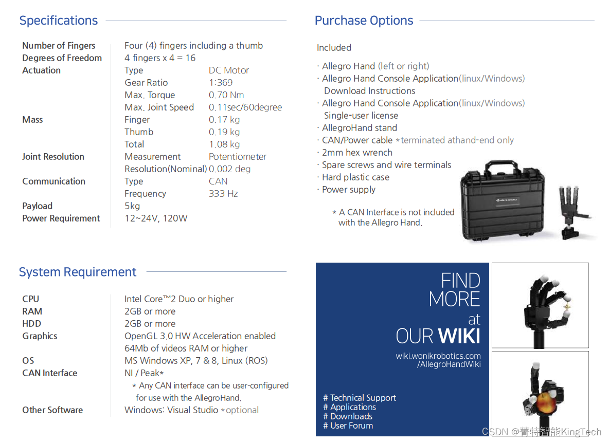 韩国Allegro Hand四指灵巧手凭借四指和十六个独立的扭矩控制关节,它是抓握和操纵研究的完美平台。