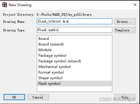2、打开PCB Editor 软件 新建Flash焊盘,并点击Browse选择存储路径以及设计名字flash_1r0x1r6