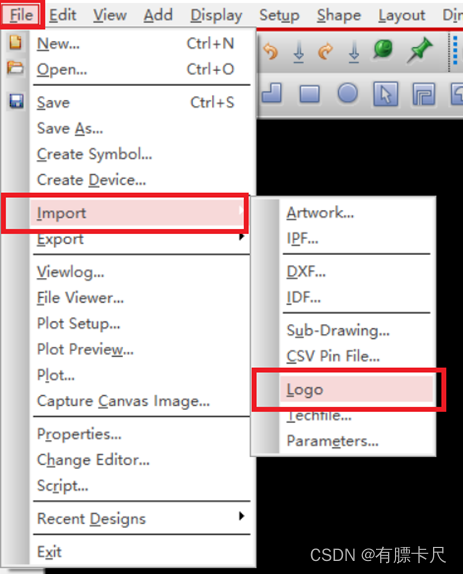 新建完文件后,我们需要将之前做好的bmp格式的logo文件导入。点击file——import——logo,然后在你保存的位置找到这个文件就行,这里需要注意要勾选保持原有图形尺寸的选项,这样才能确定你制作的尺寸。