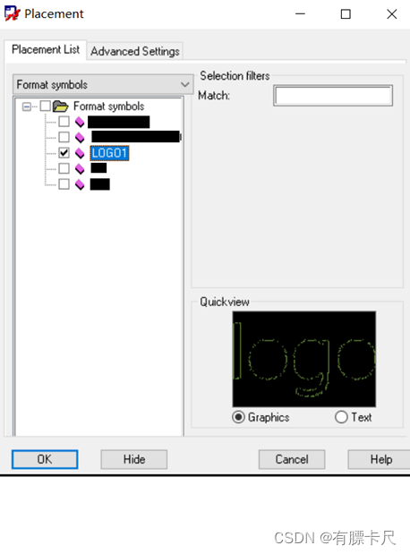我们在一个brd(pcb)文件中能够直接调用我们做的logo文件。点击place——manually——在 advanced setting中勾选library(包含你自己的库路径)——在placement list中选择format symbols就能找到之前做的logo文件——点击OK放置就行。