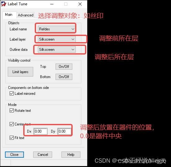完成“Label Tune“设置后,框选需要调整丝印的器件(丝印自动归位到器件中心上);