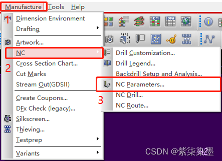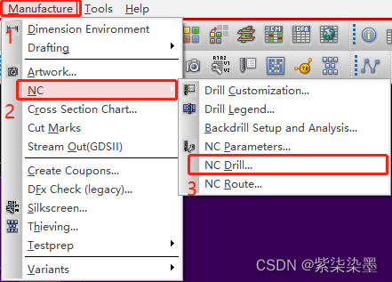 2.选择Manufacture——NC—— NC Drill… 命令 ,如下图所示:
