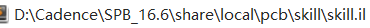 先在allegro下,用set telskill命令,打开skill解释器,然后输入getSkillPath(),得到解释器默认读取skill脚本文件的路径。