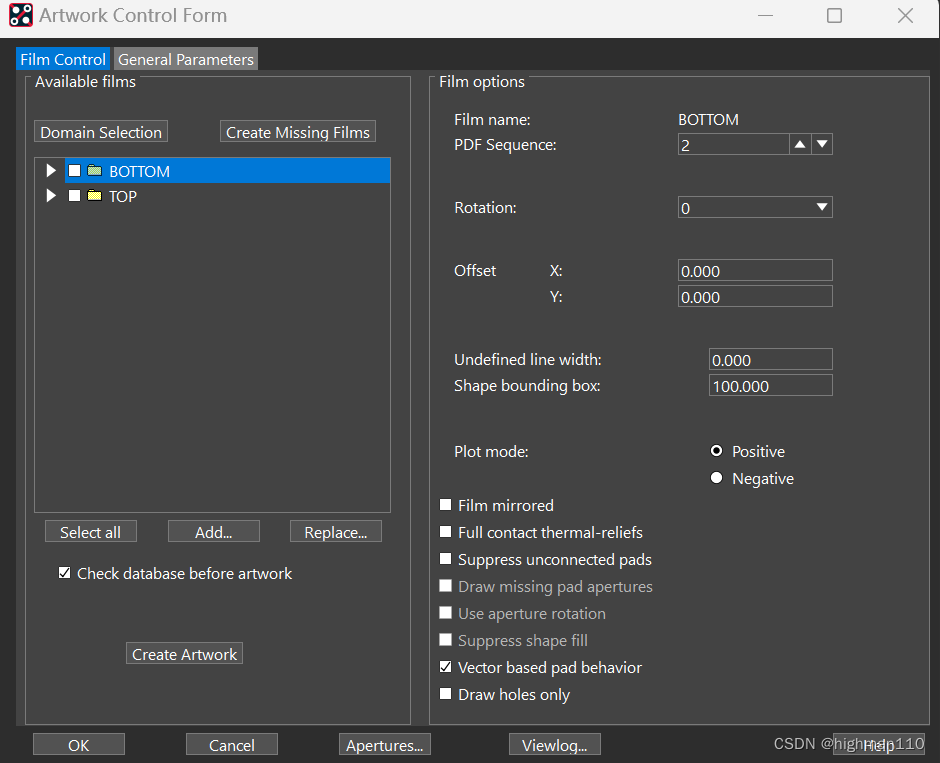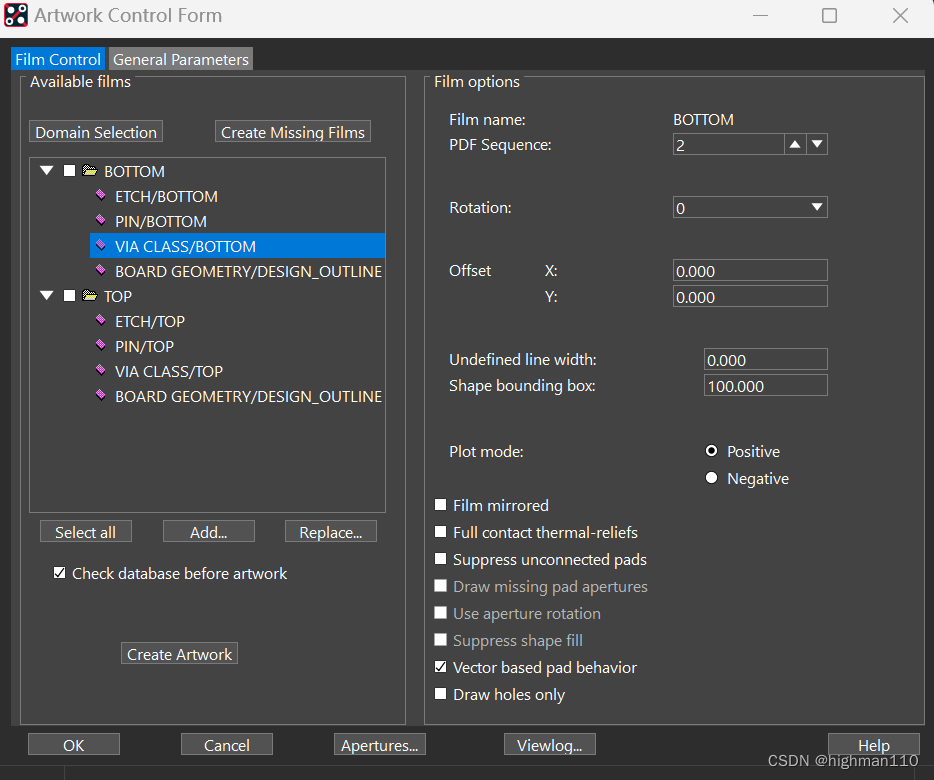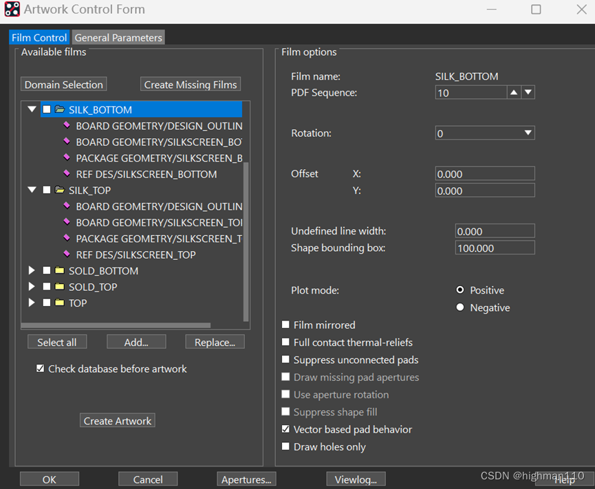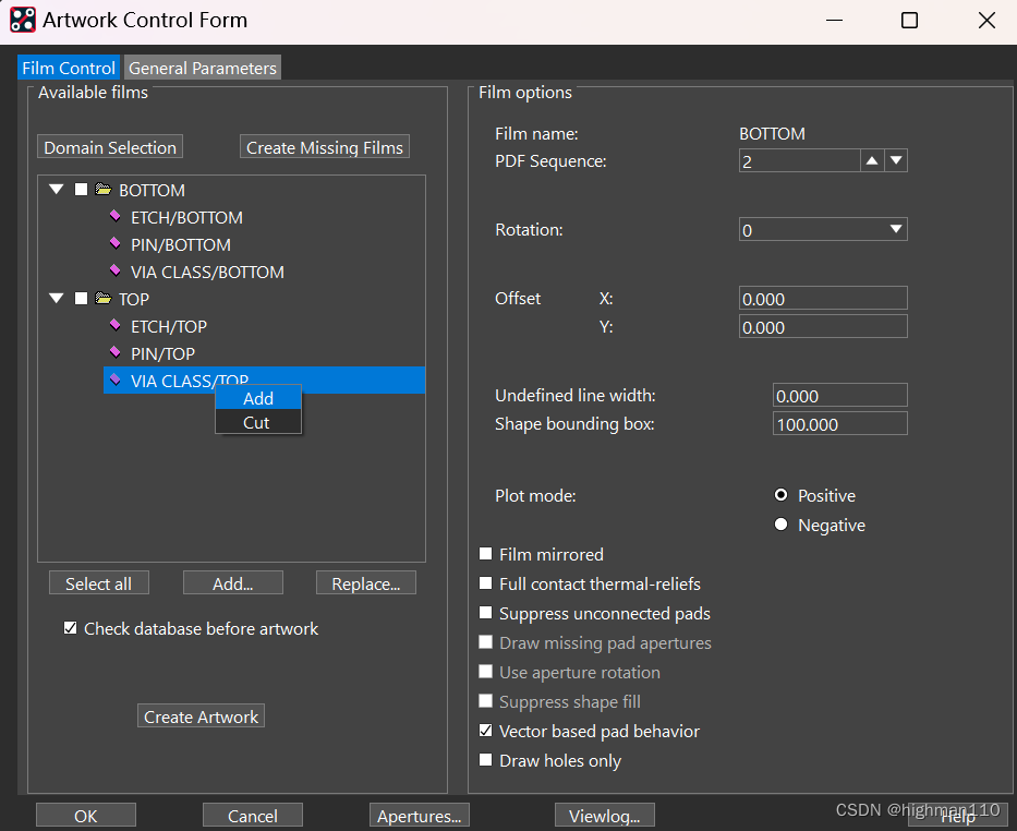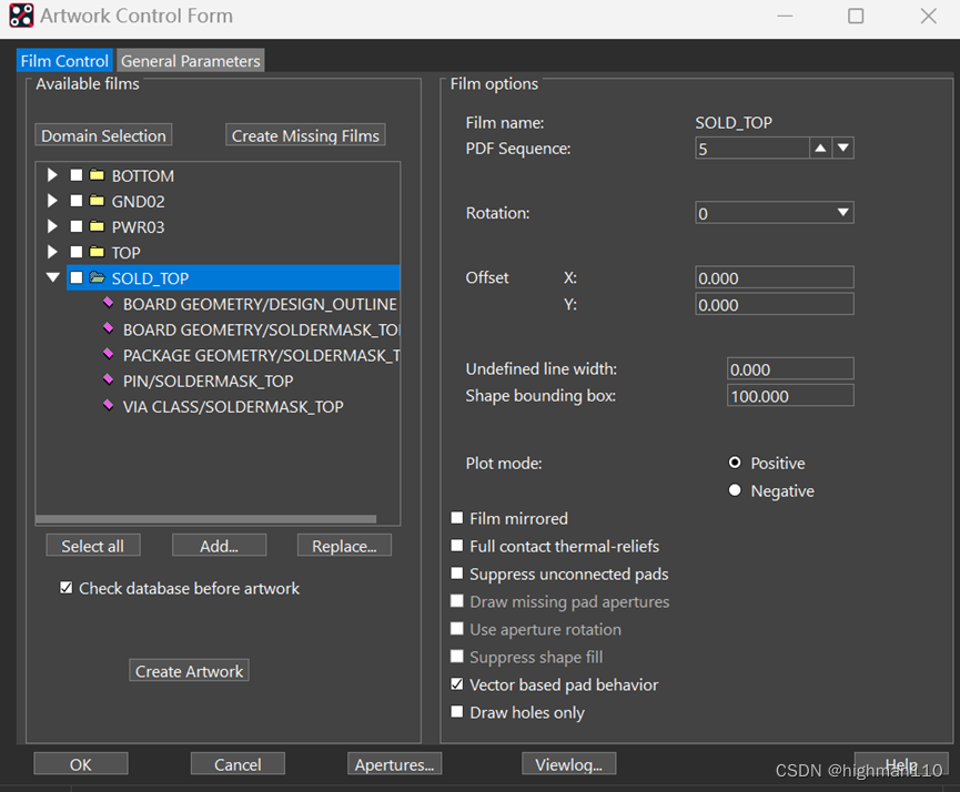 Manufacture-artwork-film control,右键-add- SOLD_TOP。同样的方法再添加SOLD_BOTTOM。
