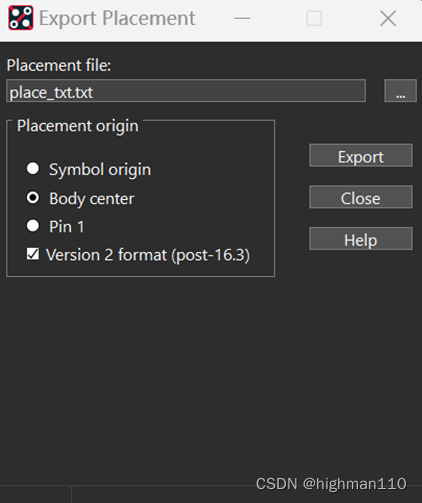 点击file-export-placement,选择body center,点击export即可生成坐标文件。