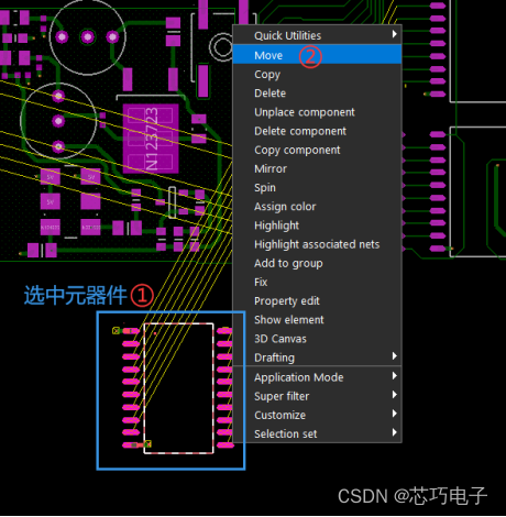 步骤三:在PCB上选择要移动的器件,鼠标点击拾起,如图5所示。
