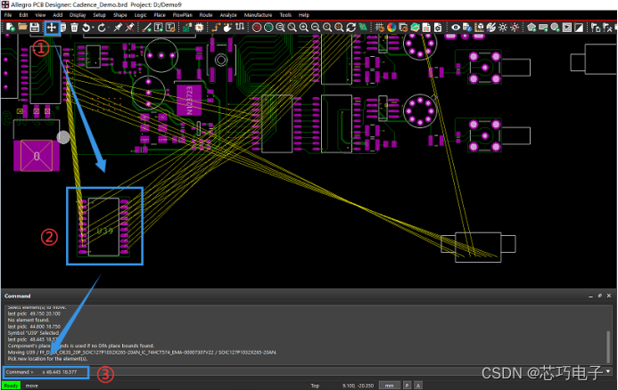 背景介绍:我们在进行 PCB设计 时,经常会用到Move命令+鼠标移动器件进行布局,但是如果需要将器件移动到指定位置或者需要将器件按照相对位置进行移动,那么用Move命令+鼠标移动的方式就很难实现,这时我们就需要用到Allegro PCB设计工具提供的Move+Command的方式来实现快速精准移动器件。