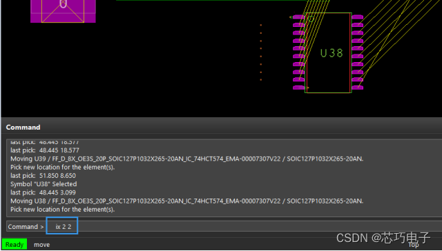 步骤五:在Command栏输入坐标后,点击回车,器件即可移动到指定位置,如图8所示。
