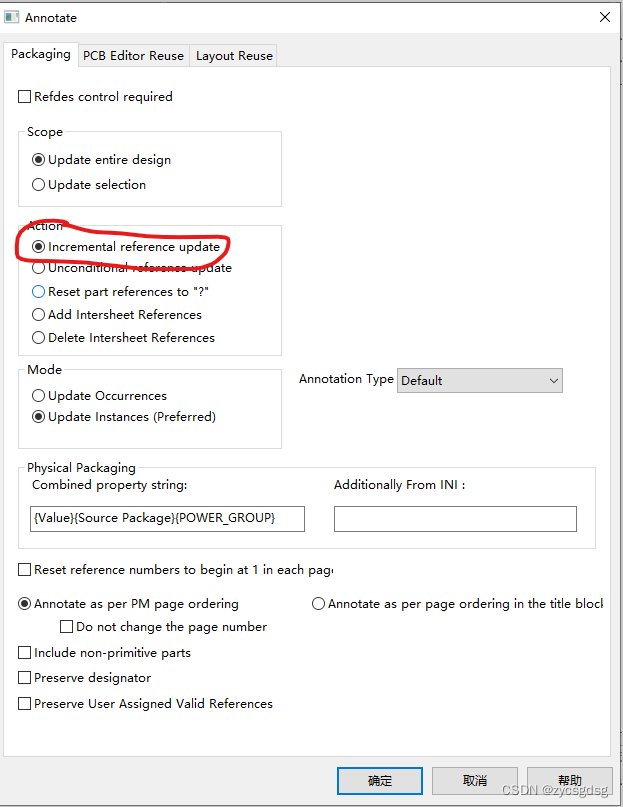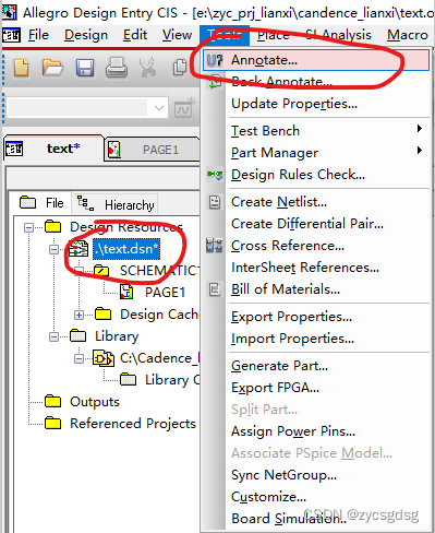 然后回到工程目录,再次选中原理图,点击Tool>Annotate,在弹出的窗口中点击如图所示位置: